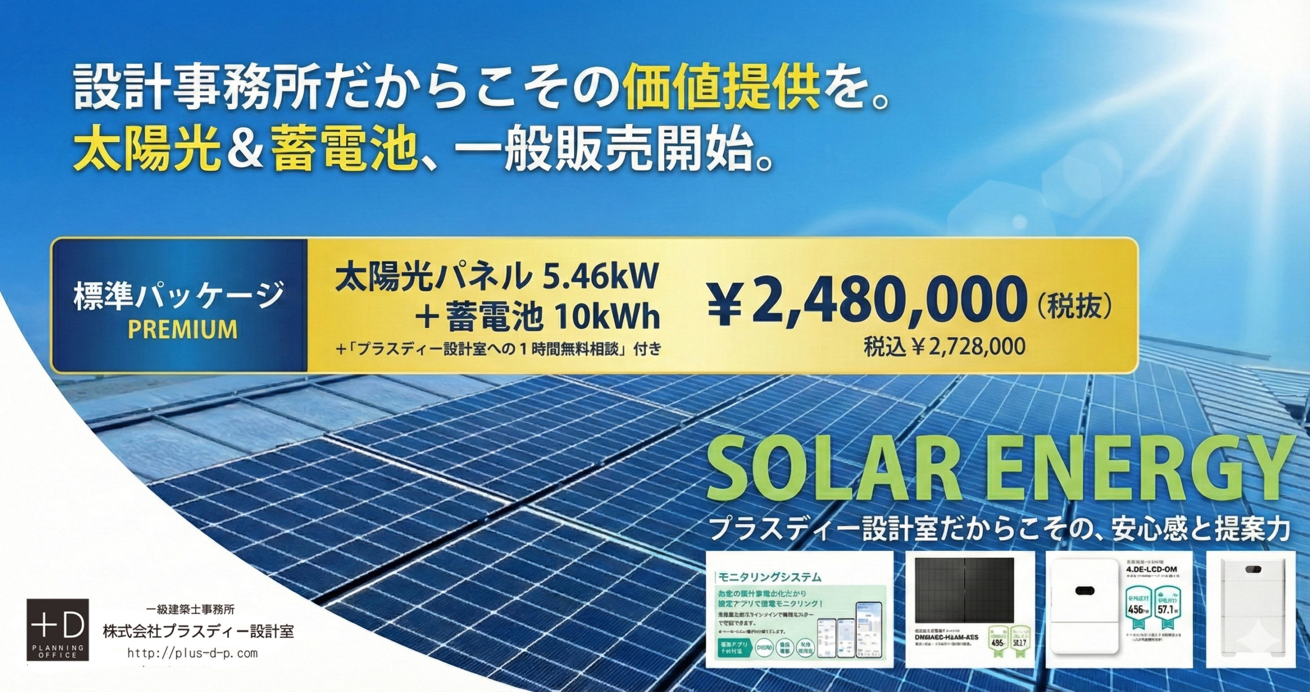 設計事務所による太陽光システム+蓄電池のご提供。